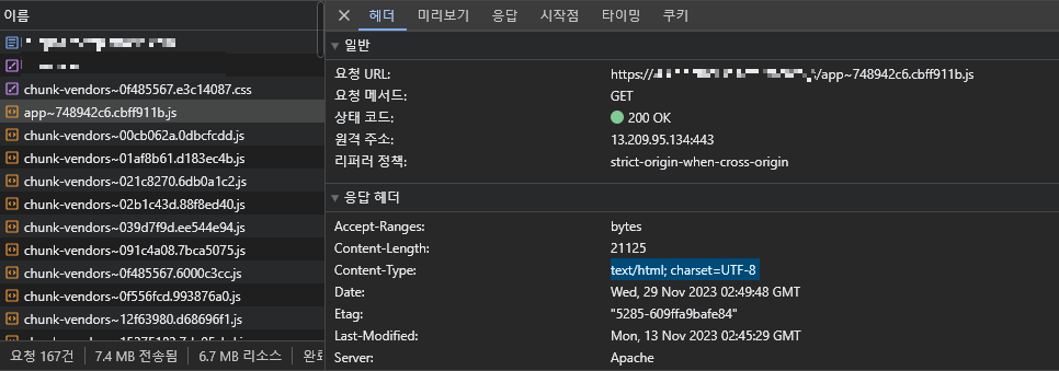 운영서버에서도 Content-Type이 개발서버와 같이 application/javascript가 되도록 설정하면 될 것 같다고 생각하였고 Apache 설정으로 해결하는 방법을 찾아보았다.